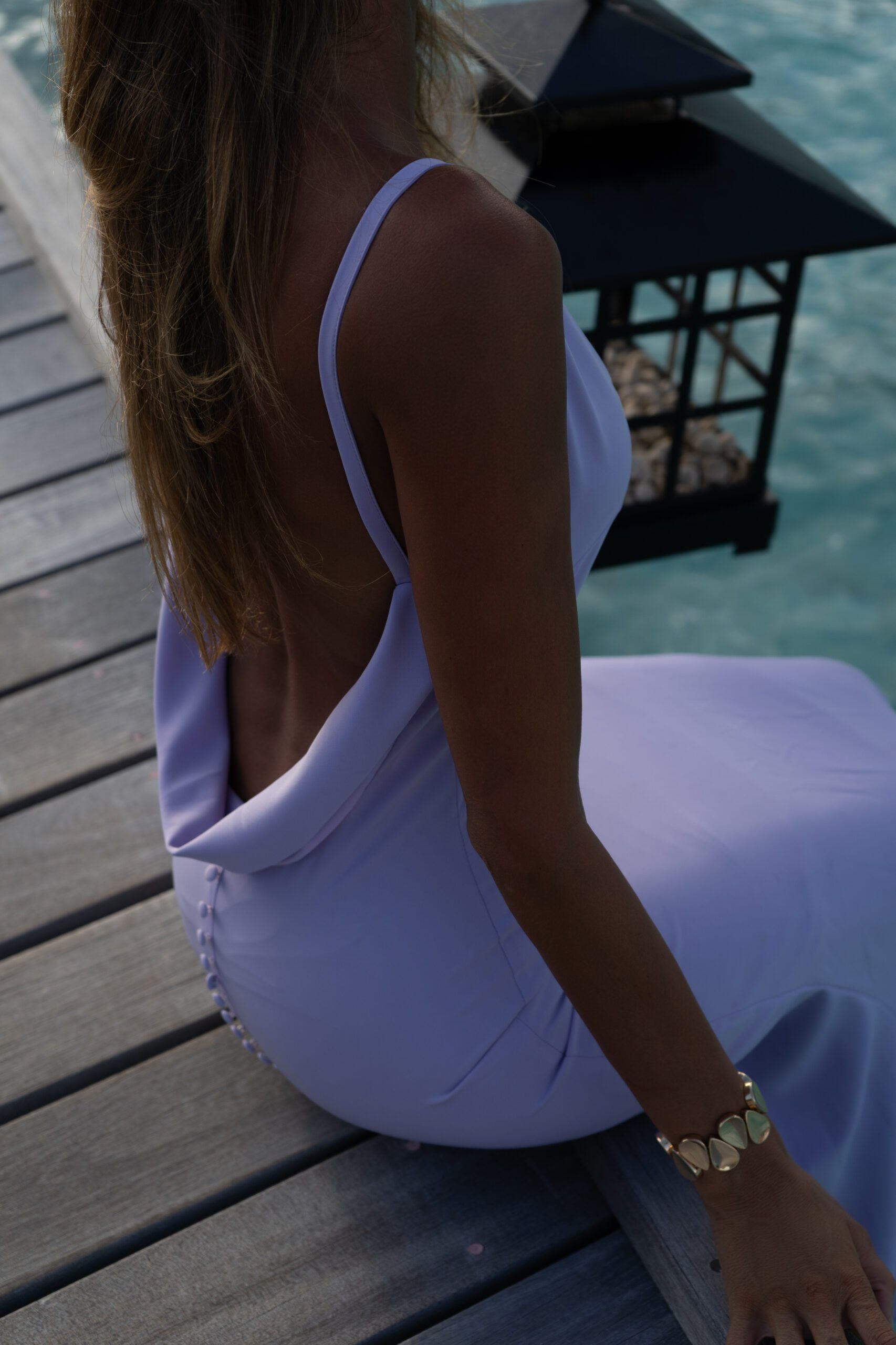 Vestido Lavanda Comprido Costas Abertas